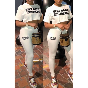 Lovely Leisure Letter Print White Two-piece Pants Set
