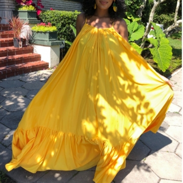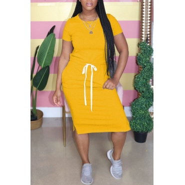 Lovely Leisure Lace-up Yellow Mid Calf Dress