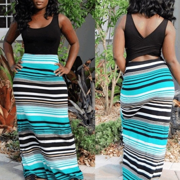Lovely Casual Striped Patchwork Baby Blue Maxi Dress