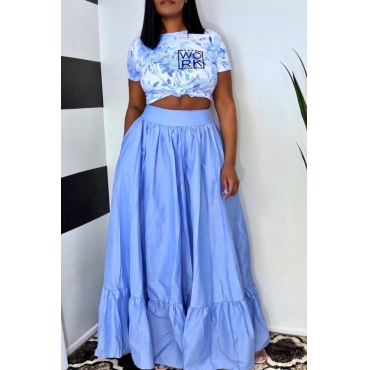 Lovely Trendy Print Blue Two-piece Skirt Set