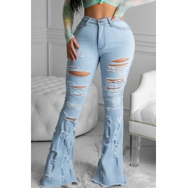 Lovely Trendy Hollow-out Baby Blue Jeans