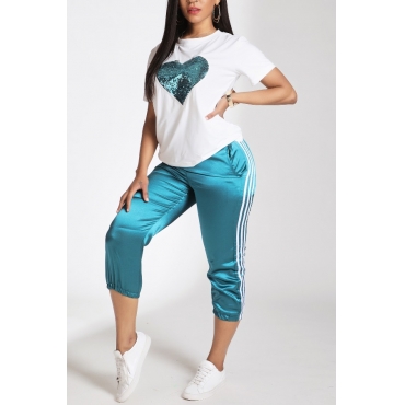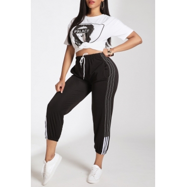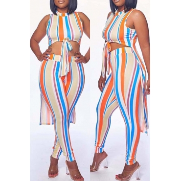 Lovely Casual Striped Lace-up Two-piece Pants Set