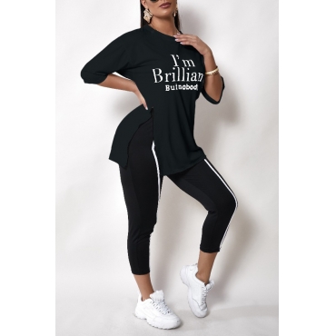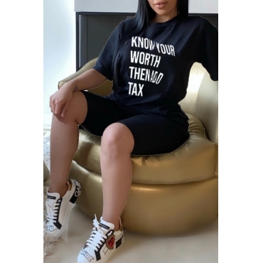Lovely Leisure Letter Print Black Two-piece Shorts Set