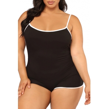 Lovely Leisure Patchwork Black Plus Size One-piece Romper