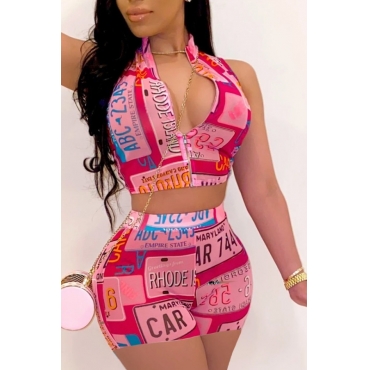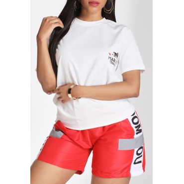 Lovely Sexy Letter Print Red Two-piece Shorts Set