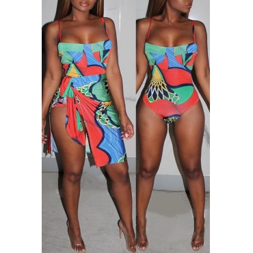 Lovely Print Multicolor One-piece Swimsuit(With Cover-up)