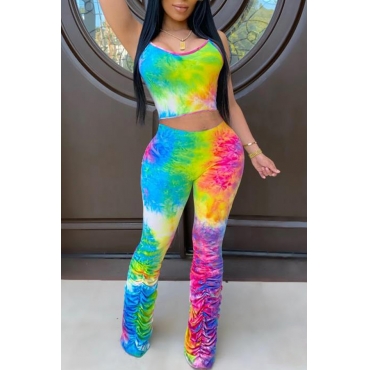 Lovely Casual Tie-dye Multicolor Two-piece Pants Set