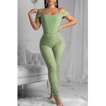 Lovely Trendy Fold Design Green Two-piece Pants Set