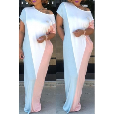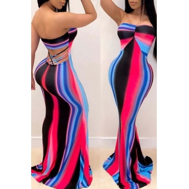 Lovely Trendy Dew Shoulder Striped Pink Maxi Dress