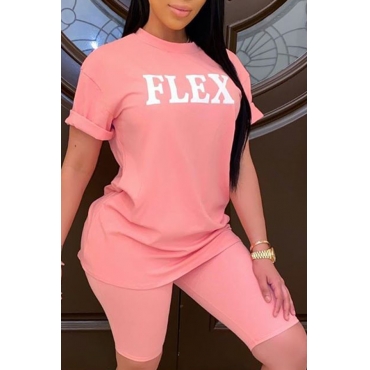 Lovely Casual Letter Pink Two-piece Shorts Set
