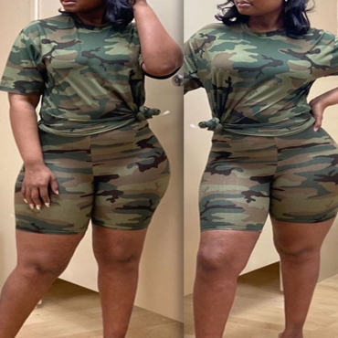 Lovely Stylish Camo Print Plus Size Two-piece Shorts Set