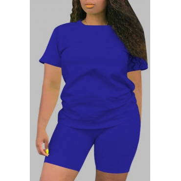 Lovely Casual Basic Blue Plus Size Two-piece Shorts Set