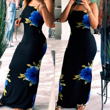 Lovely Trendy Print Black Maxi Dress