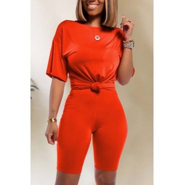 Lovely Trendy Basic Red Two-piece Shorts Set