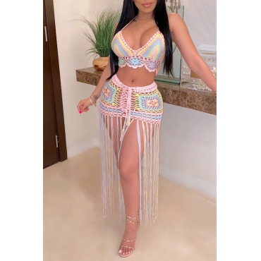 Lovely Tassel Design Multicolor Two-piece Swimsuit