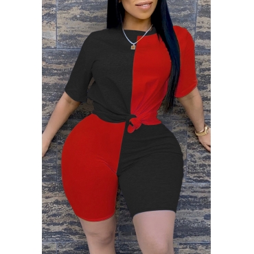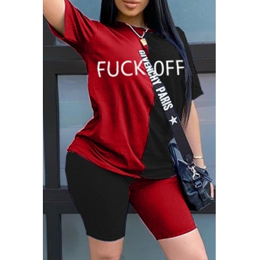 Lovely Casual Patchwork Red Two-piece Shorts Set