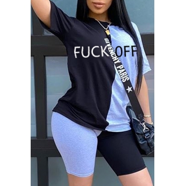 Lovely Casual O Neck Patchwork Black Plus Size Two-piece Shorts Set