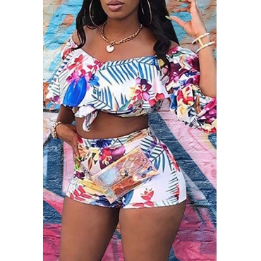 Lovely Bohemian Plants Print White Two-piece Shorts Set