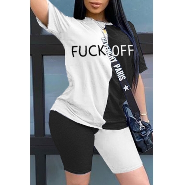 Lovely Casual Patchwork White Two-piece Shorts Set