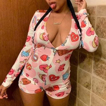 Lovely Stylish Cartoon Print Pink One-piece Romper