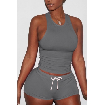 Lovely Casual Sleeveless Dark Grey Two-piece Shorts Set