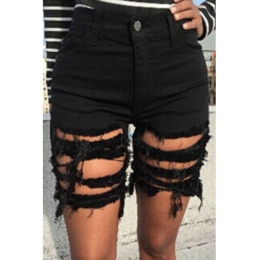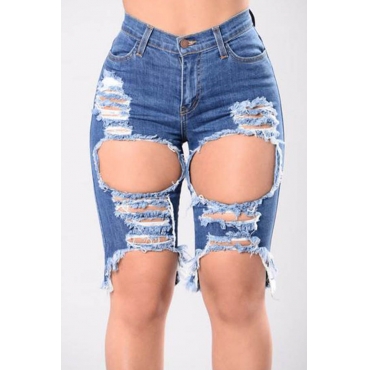 Lovely Casual Broken Holes Baby Blue Shorts