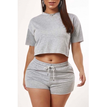 Lovely Casual Lace-up Grey Two-piece Shorts Set