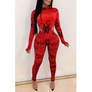 Lovely Casual Letter Print Red Two-piece Pants Set