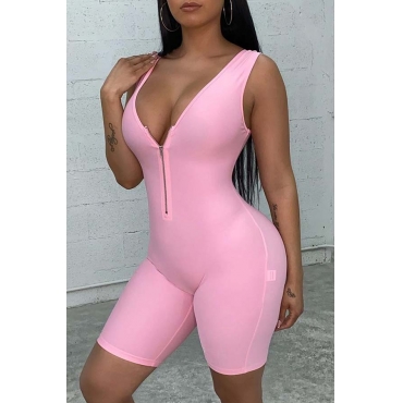 Lovely Sportswear Zipper Design Pink One-piece Romper