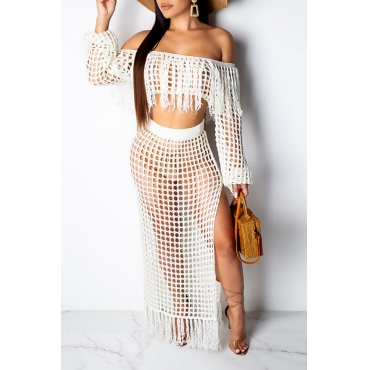 Lovely Bohemian See-through White Beach Skirt Set