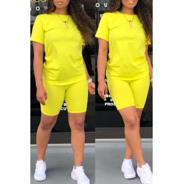 Lovely Casual Basic Yellow Two-piece Shorts Set