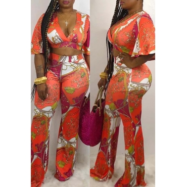 Lovely Trendy Crop Top Print Red Two-piece Pants Set