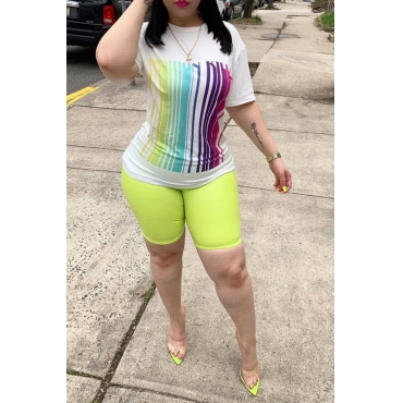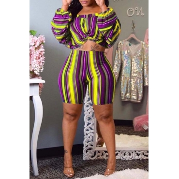 Lovely Casual Striped Yellow Two-piece Shorts Set