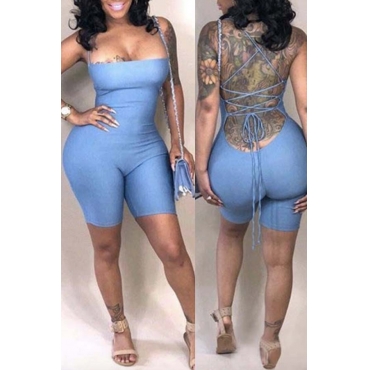 Lovely Trendy Backless Baby Blue One-piece Romper