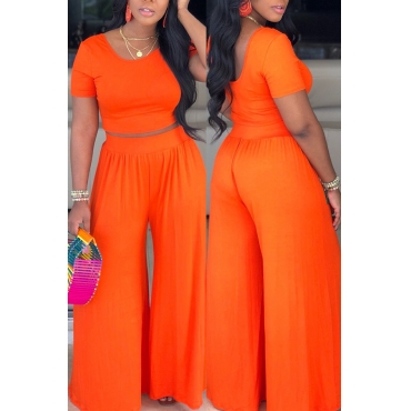 Lovely Casual O Neck Orange Two-piece Pants Set