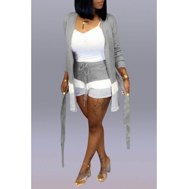 Lovely Casual Patchwork Light Grey Two-piece Shorts Set(Without Tank Top)