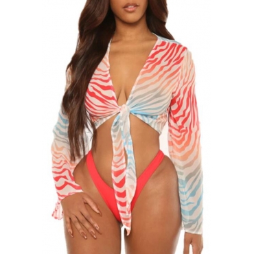 Lovely Striped Knot Design Red Two-piece Swimwear