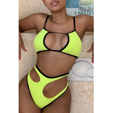 Lovely Hollow-out Green Two-piece Swimsuit