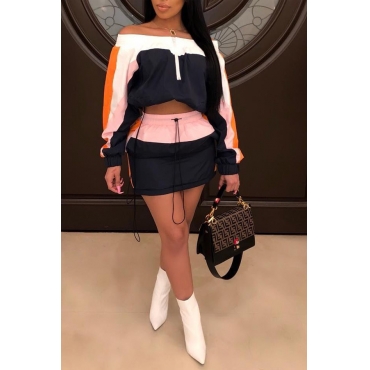 Lovely Casual Patchwork Dark Blue Two-piece Skirt Set