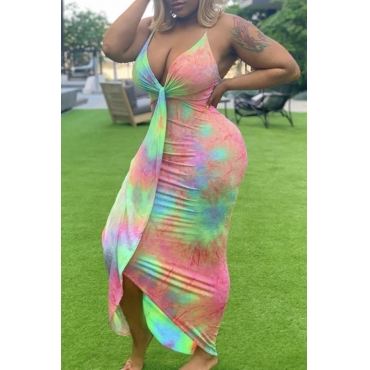 Lovely Bohemian V Neck Tie-dye Pink Maxi Dress