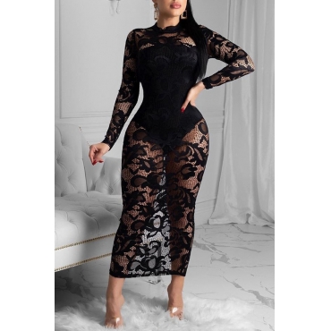 Lovely Party Lace Patchwork Black Ankle Length Dress