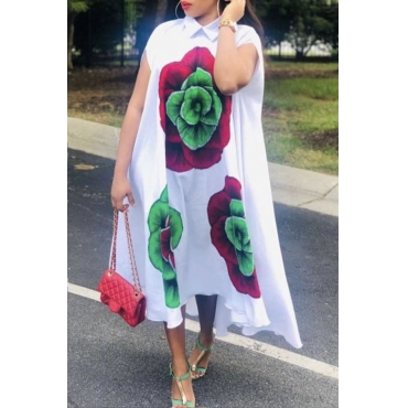 Lovely Casual Floral Print White Ankle Length Dress