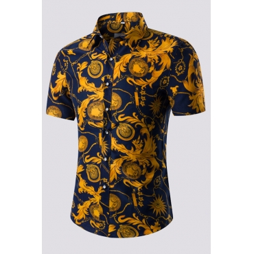 Lovely Men Chic Ptint Navy Blue Shirt