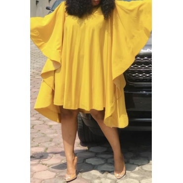 Lovely Chic Loose Flounce Design Yellow Knee Length Dress