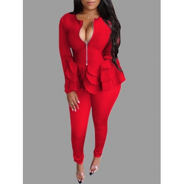 Lovely Casual Flounce Design Red Two Piece Pants Set