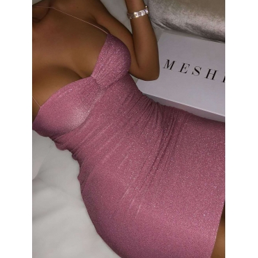 Lovely Sexy Spaghetti Strap Skinny Pink Mini Dress