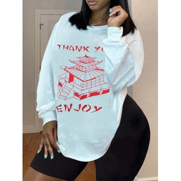 Lovely Casual O Neck Print White Plus Size T-shirt