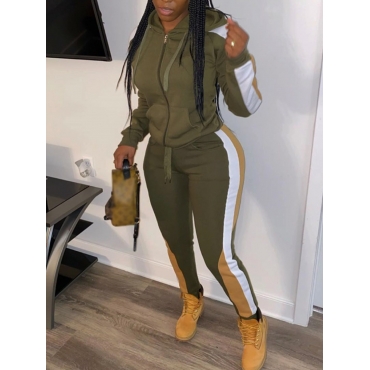 Lovely Sportswear Hooded Collar Patchwork Army Green Two Piece Pants Set