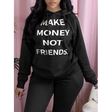 Lovely Casual Hooded Collar Letter Print Black Hoodie