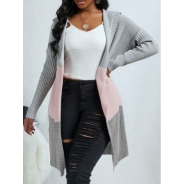 Lovely Trendy Hooded Collar Patchwork Pink Cardigan